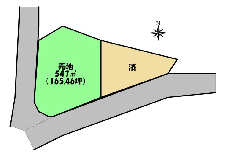 | 土地面積 | 547㎡(165.46坪) | 接道 | 南側(公道)幅 約6.5m 西側(公道)幅 約10.0m |
