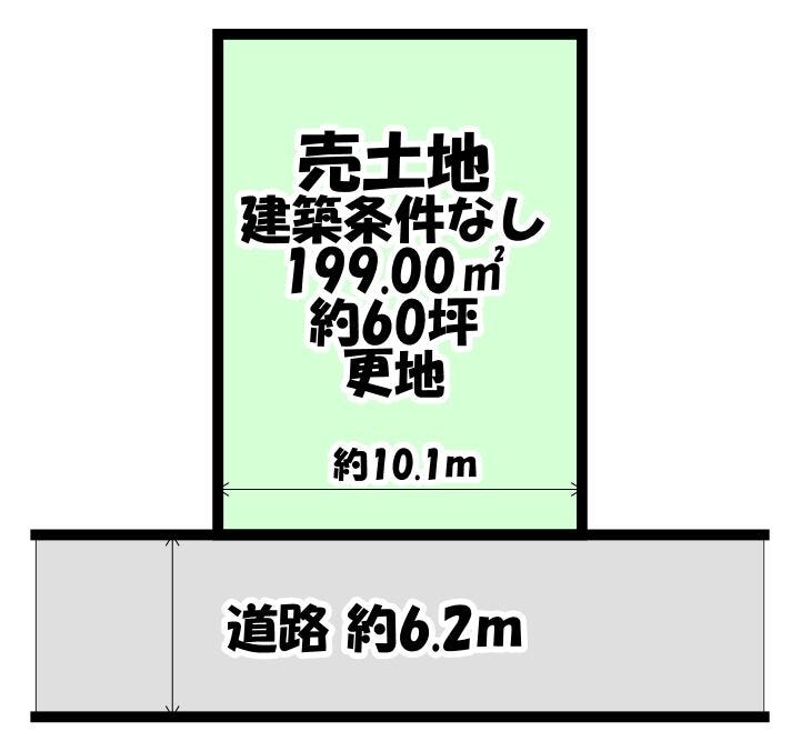 土地面積 199㎡(60.19坪) 接道 北西側幅 約6.2m 間口 約10.10m